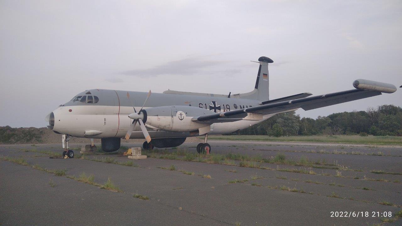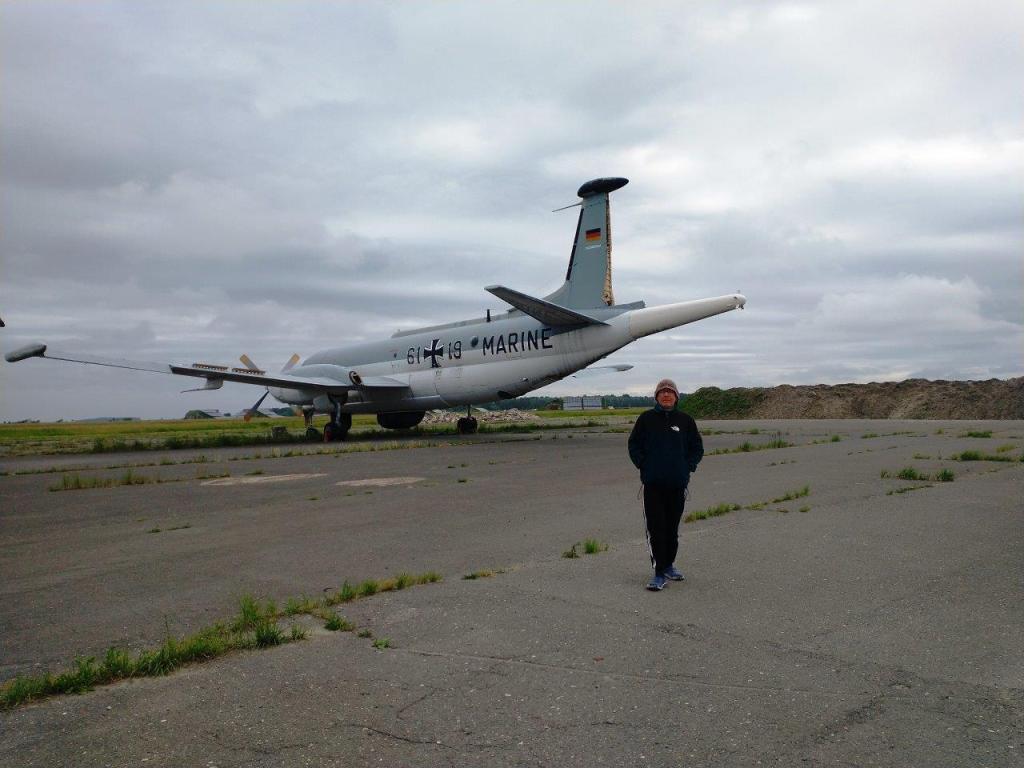 Przyszedł jednak czas na konfrontacje. Przy ujściu rzeki i wypłynięciu na zatokę Greifswald zaczyna wiać i falić. W miarę porządnie. My dajemy radę, a silnik nie. Ewakuujemy się do portu Peenemünde Nord. Tam korzystamy z okazji i zwiedzamy lotnisko z czasów II wojny światowej. Są ogromne pasy startowe w stanie lepszym niż niejedna droga samochodowa w Polsce. Częściowo jest czynne. Jest też mnóstwo obetonowanych hangarów i samolot. Samolot, to coś dla pasjonatów militariów. Wygląda tak jak by przed chwilą wysiadł z niego Wernher von Braun /ten od rakiet V1/. W wolnych chwilach wieczornych gramy w Rummikuba.