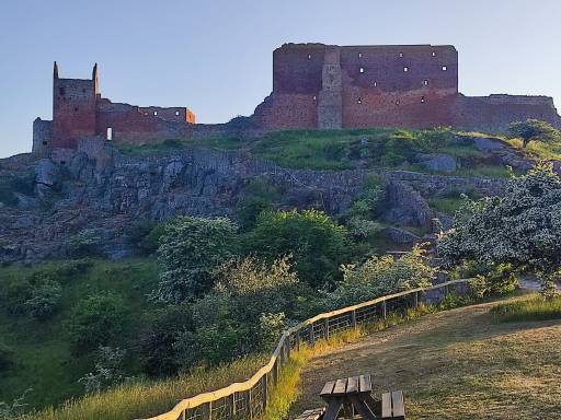 Następny port to Hammerhavn też na Bornholmie. Ale taki mały odgrodzony granitowymi głazami w małej zatoce. Na wzgórzu stare ruiny zamczyska. Przy porcie parkuje kilka kamperów. W porcie cztery polskie jachty zrobiły sobie zbiórkę na dalsze wypady. Wypłynęły szybciutko, cichutko, raniutko.
