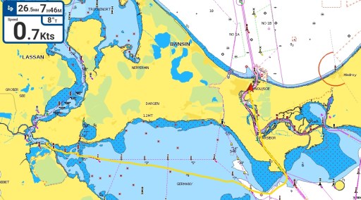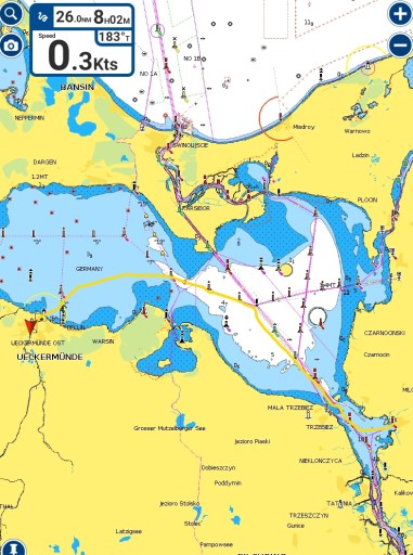 Screen z nawigacji: żółta linia to ślad mojego pływania.