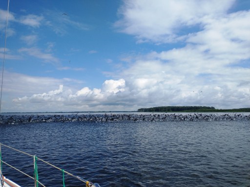 Kolejny rejs to już inna historia. Rodzinna załoga: Grażynka, Ula, Zosia oraz psinka Melisa miała konkretny plan. Wszyscy znają ten akwen i wiedzą, czego tu można się spodziewać, a największą atrakcją była kąpiel w Bałtyku (szczególnie dla psinki).