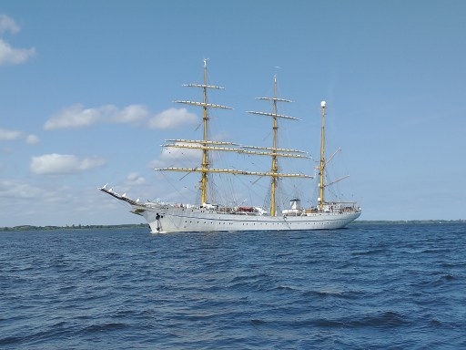 Na tygodniowe pływanie po zalewie wybrała się również rodzina: Agnieszka z Michałem i Szymonem. To załoga wytrawna i chętna do zdobywania doświadczenia żeglarskiego. Znają zalew i wiedzą, że „szorstką” pogodę przeczekuje się w porcie. W tym czasie atrakcją był zlot żaglowców The Toll Ships Races 2024 w Szczecinie. Piękne żaglowce płynące ze Świnoujścia do Szczecina, a później stojące przy nabrzeżach podziwialiśmy z pokładu naszego jachtu..