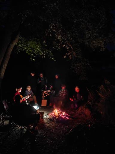 Ekipę żeglarską ogarniała Iza. Pierwsza noc upłynęła nam w pięknym buczynowym lesie. Fajna miejscówka. Ognisko, kiełbaski, napoje pocieszenia i trzy gitary. Koncert jak Leszka Możdżera na trzech fortepianach. A wokal taki cudny. Asia nadawała ton.