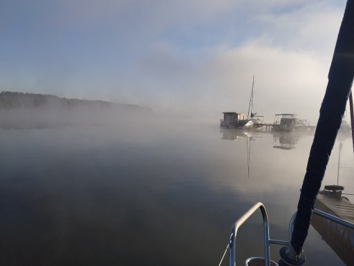 Po powrocie opowiedziałem o naszym rejsie a Arek zaczął wypytywać czy byliśmy: na Krzywym Kolanie?- nie byliśmy, w Pieczyskach? – byliśmy, na j. Lipkusz?- byliśmy, na Krówce?- nie byliśmy, czy są jeszcze linie wysokiego napięcia? – były.. Arek swoje pierwsze złowione ryby i niewinne rejsy zaczynał właśnie na Zalewie i znał wszystkie zakamarki tego akwenu. My z wielką ostrożnością eksplorowaliśmy te płytkie wody. W nawigacji http://xn--egluj-hib.pl/ same ostrzeżenia o przeszkodach i płyciznach. Aplikacja pogodowa windy.com/pl pokazywała nocą minus 4, a w dzień trochę powyżej 0. Dla podniesienia naszego nastroju psychicznego w dzień aplikacja zapowiadała słońce. I tak też było przez pięć dni pływania. Wiatr-mała trójka. Przy rannym wstawaniu na siku należało uważać na zlodowaciały pokład.