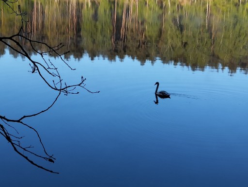 Codziennie inny zakątek akwenu. Odwiedziliśmy znajomych Maćka w klimatycznym uroczysku. Zwiedziliśmy ziemną zaporę zbudowaną w 1960r. piętrzącą wody Brdy do 31,5m i tworzącą zalew o powierzchni 13,5 km². Było też co nieco dla duszy, ciała i uszu. Czarek na swojej kochance* wygrywał i śpiewał przecudnej urody szanty. My dla ocieplenia atmosfery i ciała degustowaliśmy co kto miał. A napitki były różne. No i ta kawa „Na Anioł Pański” znaczy o 12.00 celebrowana w zacisznych nasłonecznionych /wiadomo dlaczego/ miejscach. Na kawę wpraszał się trochę nachalnie biały łabędź. Domagał się przywilejów i smakołyków. Zwracał na siebie uwagę swoim dostojeństwem, gracją ruchów i determinacją w osiągnięciu swojego celu.