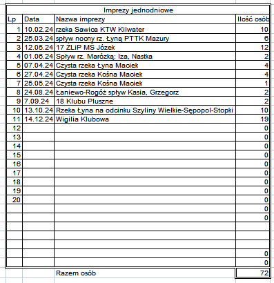 Zanim podsumujemy mijający rok 2025, dokonamy ujawnienia aktywności dokonanych przez członków klubu, które miały miejsce w roku 2024. Przedstawimy szlak, na którym pozostawiliśmy ślad działania naszego klubu. Szczegóły poniżej:
