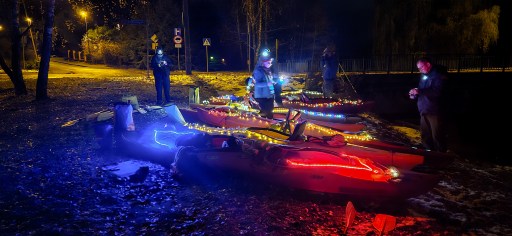 · przystrajanie kajaków światełkami, instruktaż- określenie zasad, pamiątkowe zdjęcie, wodowanie,